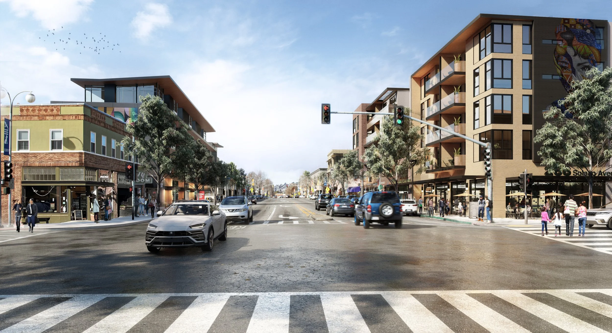 The San Pablo Avenue Specific Plan enables the transformation of an auto-oriented corridor to a place that supports residential mixed-use development and safe convenient facilities for pedestrians, bicyclists, and transit riders. It makes bold changes to allowed uses, densities, building heights, and placemaking to facilitate greater equity, economic vibrancy, and community development. This Plan recognizes the role of State law and devises a strategy that can both take advantage of it, while still allowing decision-makers and planners opportunities for local input and local design priorities in a streamlined process.